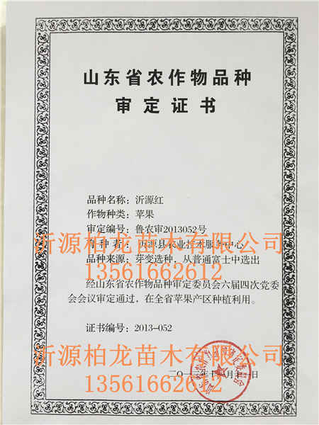 沂源柏龍苗木有限公司(柏龍苗木基地),建在魯山山麓8518核桃選育地,是沂源資質深,規模大,經驗足的專業實體苗木公司。早在70時代就為林業局定點苗木基地。2006年選育8518核桃苗。公司做事以誠信為宗旨,創新為目標,已逐步打造出柏龍系列的品牌苗,先后選育了750萬株8518核桃苗,遠銷21個省市。2012年隨市場需求,增育了文玩核桃苗(麻核桃),同時在縣政府指導下進行培育了“沂源紅”蘋果苗!耙试醇t”蘋果苗一經問世,因其是短枝型,易管理,結果早,產量高,果色艷麗,條紅,口感爽脆,是名副其實的優質品種。